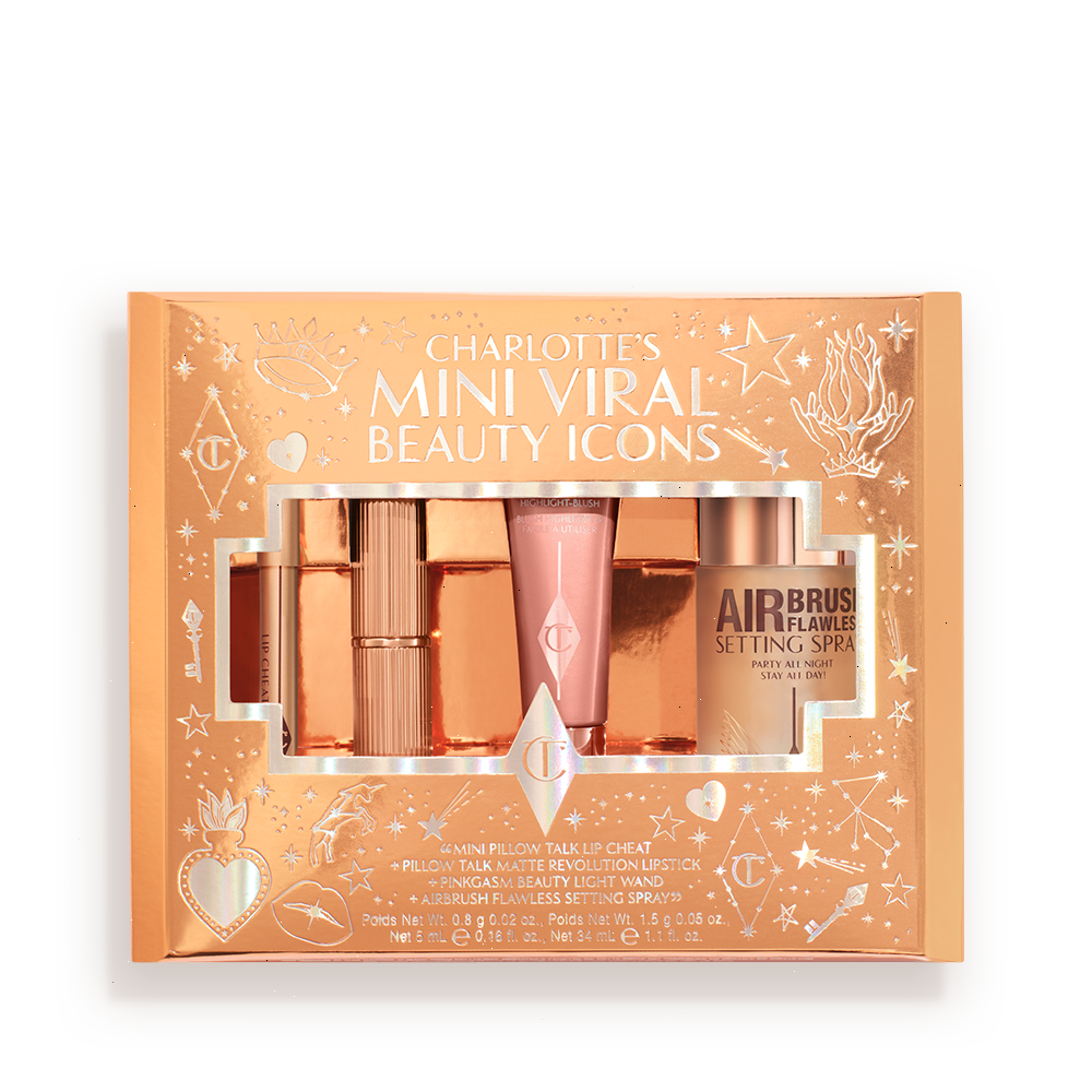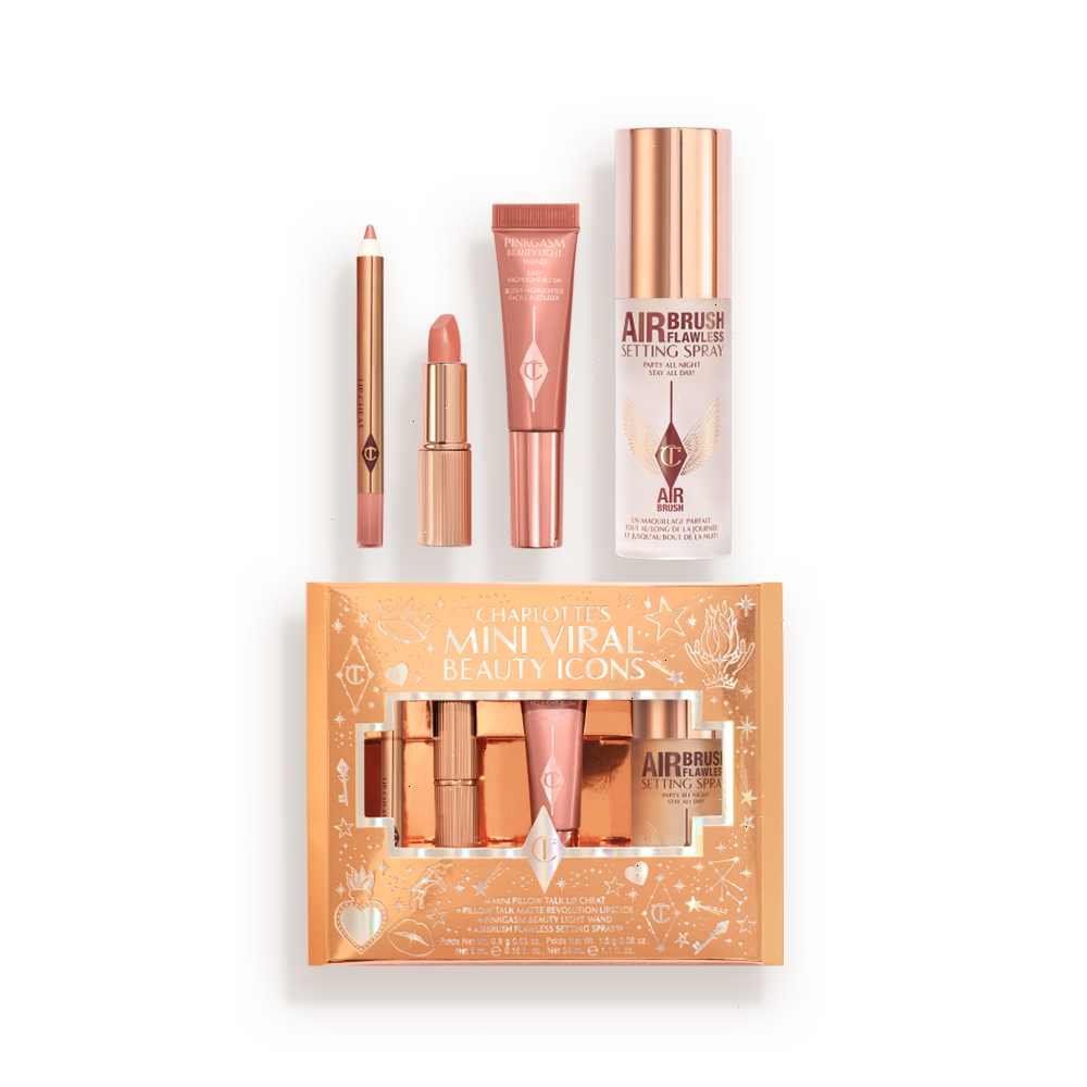 Includes 4 best-selling icons – my social media sensation Beauty Light Wand in Pinkgasm, a travel-size AIRbrush Flawless Setting Spray, a mini Pillow Talk Matte Revolution lipstick and a mini Pillow Talk Lip Cheat. It's all my legendary beauty secrets, perfectly packaged together for the look of your dreams!
