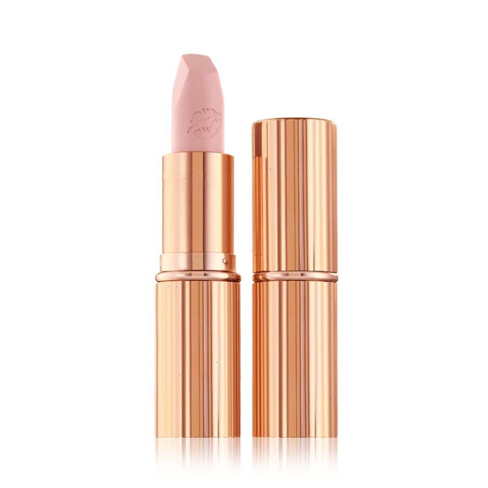 Darlings, get Kim K’s signature nude lip! My HOT LIPS lipstick in KIM K.W. is in my K.I.S.S.I.N.G formula for a fuller, kissable pout. This light pinky beige nude lipstick is the perfect vintage-inspired color reminiscent of 1960’s screen sirens.