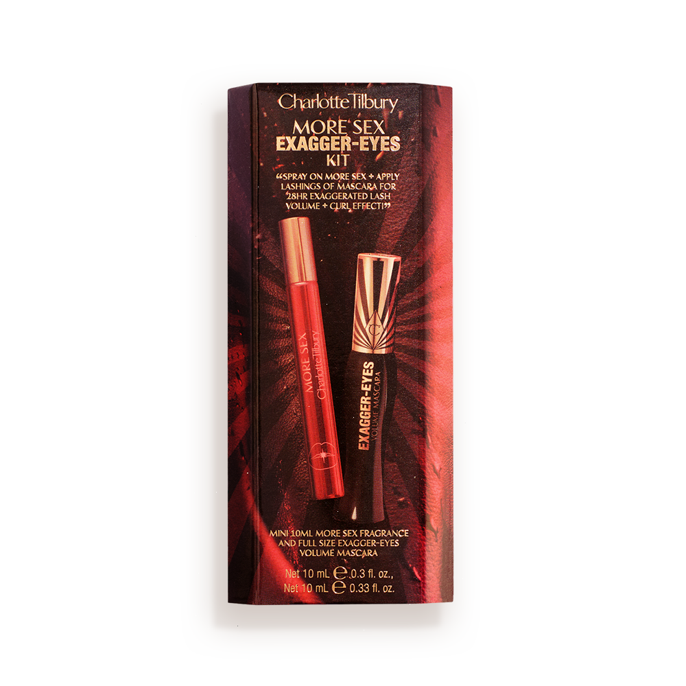 This kit includes my Exagger-Eyes Volume Mascara for bigger, thicker, longer looking lashes and a 10ml bottle of my globally-loved More Sex fragrance to unlock the secret to seduction!
