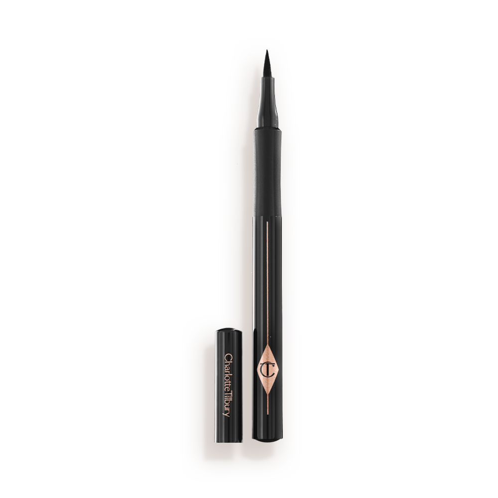 Tilbury Tip: For a flawless-looking result in a flash, look straight into the mirror and after Step 1, draw a dot where the flick should end as a guideline.
